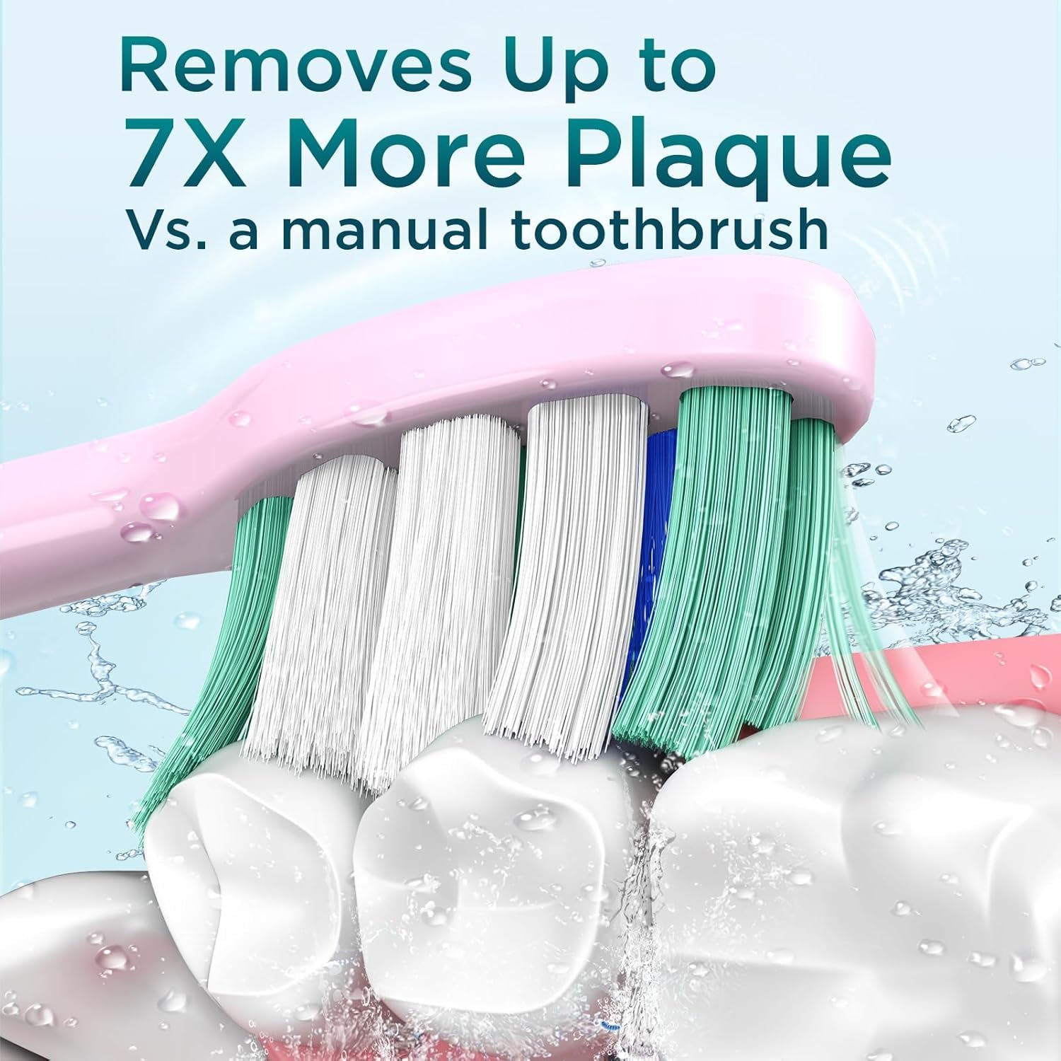- Superior Clean and Healthier Gums – Up to 40,000 VPM high vibration sonic toothbrush. Remove up to 99.99% of plaque and stains for a deep clean along the gumline and between the teeth. With soft flexible sides, the bristles contour to the shape of each tooth’s surface to provide 4x more surface contact and remove up to 10x more plaque from hard-to-reach areas for a deep clean.